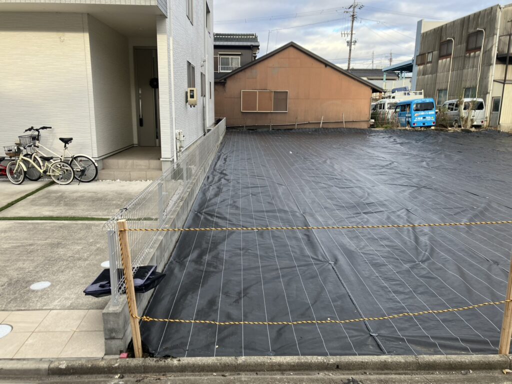 名古屋市西区在住のYさん。シルバーさんに頼んではまた伸びての繰り返し。土地も広く少しお金はかかりましたが、重機を入れて、根を取り、木の伐採・伐根も行い、防草シートを施工。